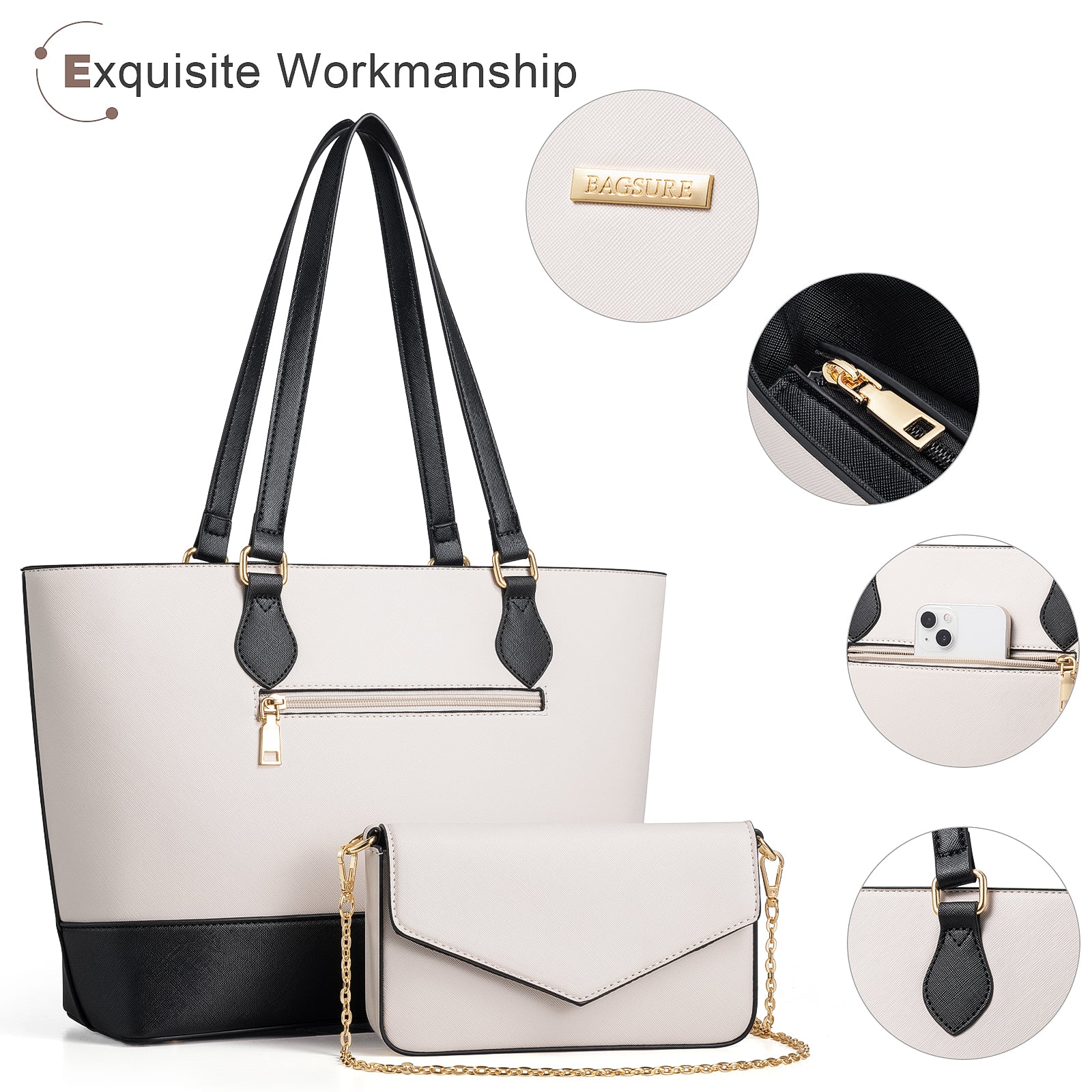 Bagsure versatile 4-piece set women tote bag with a trendy crossbody bag, a compact wristlet bag and a stylish chain bag, expertly crafted to blend practicality and elegance. Everything you need to stay organized and fashionable on the go.