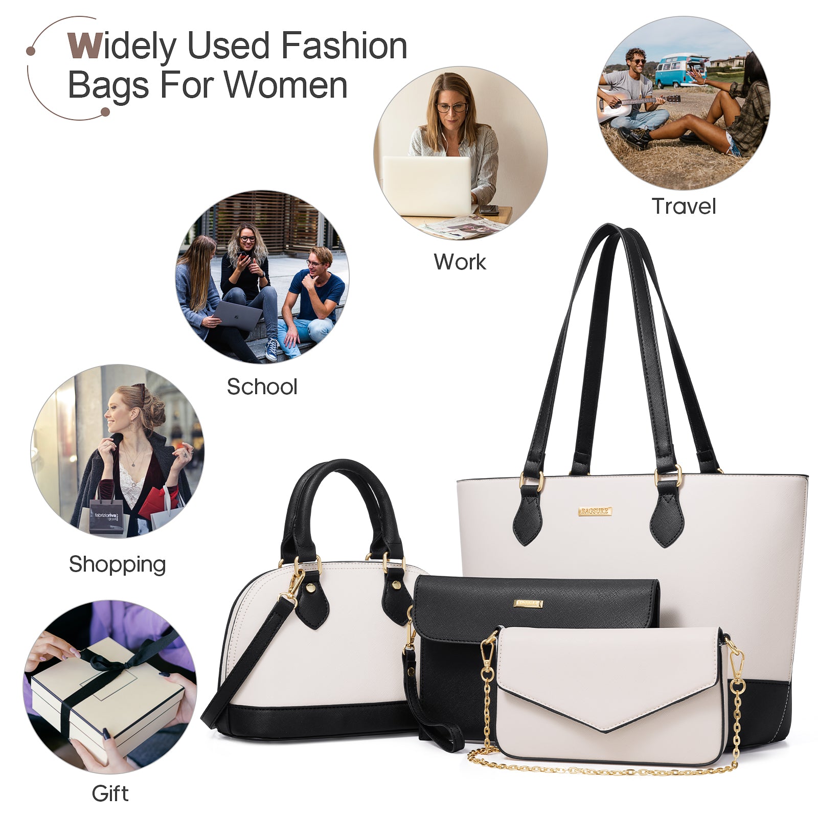 Bagsure Women Handbags Fashion Tote Shoulder Bags Casual Crossbody Bags for Women Handbag Set 4pcs